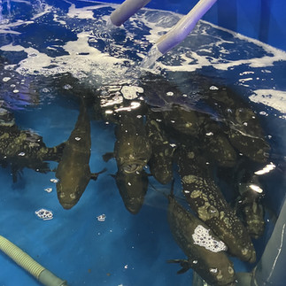クエタマは、日本近海に生息する高級魚「クエ(Epinephelus bruneus)」と、世界最大級のハタ科魚類である「タマカイ(Epinephelus lanceolatus)」を交配させたハイブリッド種です。クエの豊かな味わいと、タマカイの優れた成長性を併せ持つことから、次世代の養殖対象魚として期待されています。